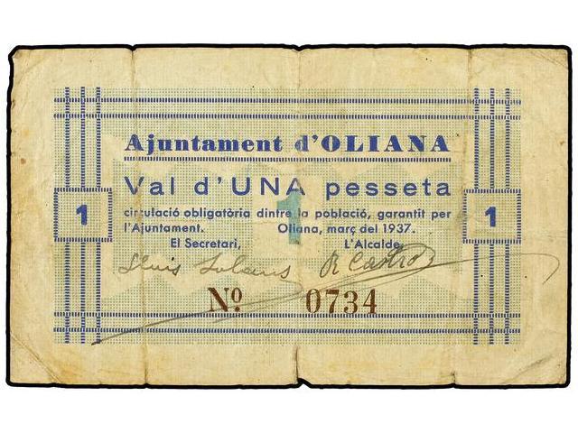 1 Pesseta. Març 1937. Aj. d´OLIANA. RARO. AT-1686; T-1937. MBC-.