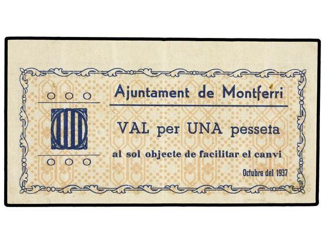 1 Pesseta. Octubre 1937. Aj. de MONTFERRI. RARO. AT-1571; T-1807. EBC.