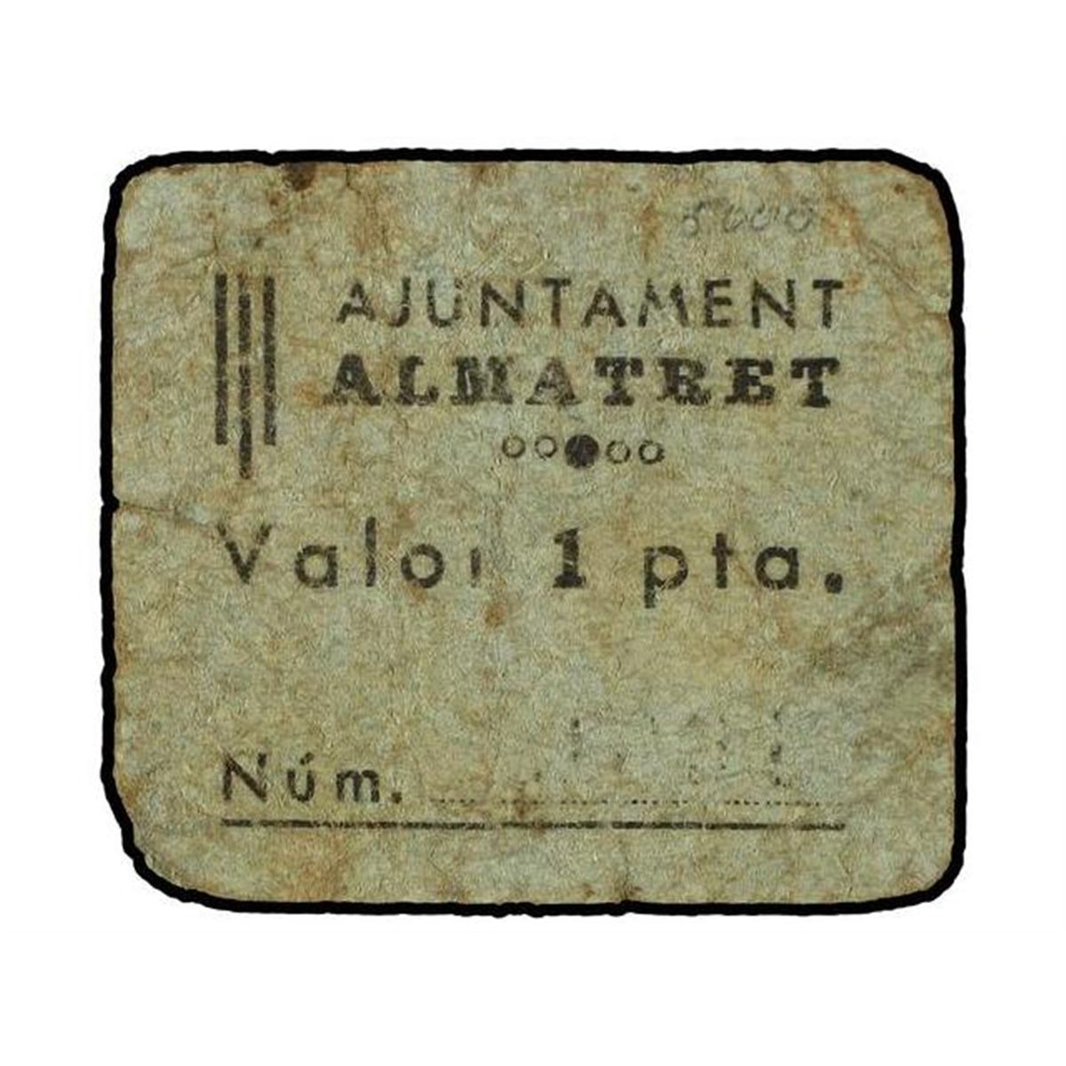 1 Pesseta. - S/F. - Aj. d´ ALMATRET. - Cartón. MUY ESCASO. AT-118;T-162. BC+. - -