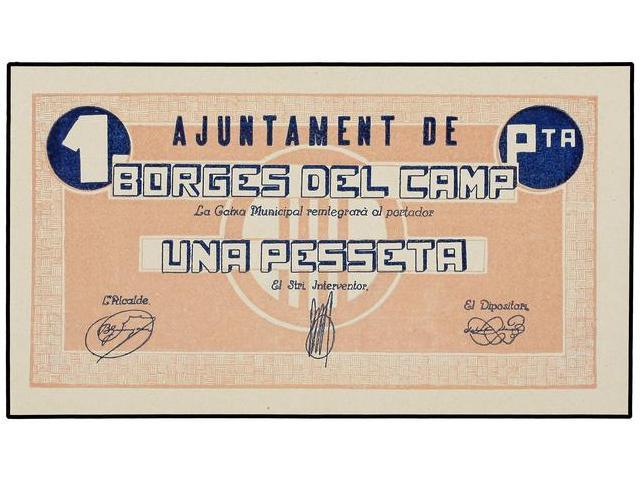 1 Pesseta. S/F. Aj. de BORGES DEL CAMP. (Pequeña doblez en esquinas). AT-496; T-586. SC.