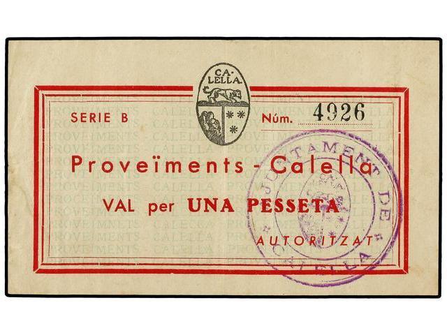 1 Pesseta. S/F. Aj. de CALELLA. MUY ESCASO. AT-600a; T-699a. MBC.