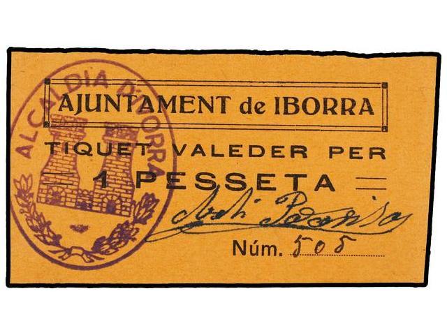 1 Pesseta. S/F. Aj. de IBORRA. Cartulina. MUY ESCASO. AT-1271; T-1445. SC.