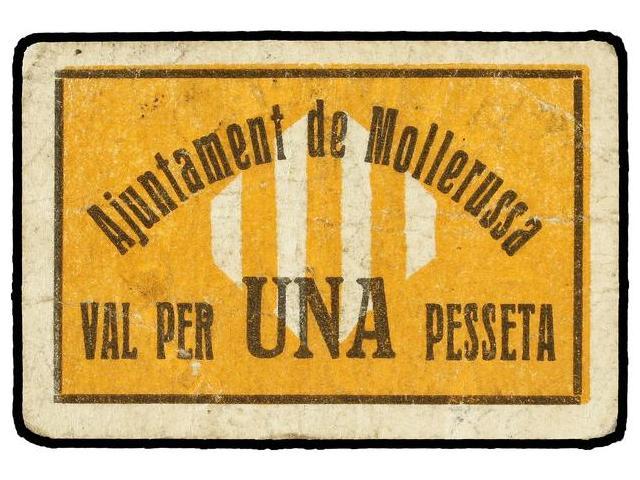 1 Pesseta. S/F. Aj. de MOLLERUSSA. Cartulina. ESCASO. AT-1514; T-1736. MBC.