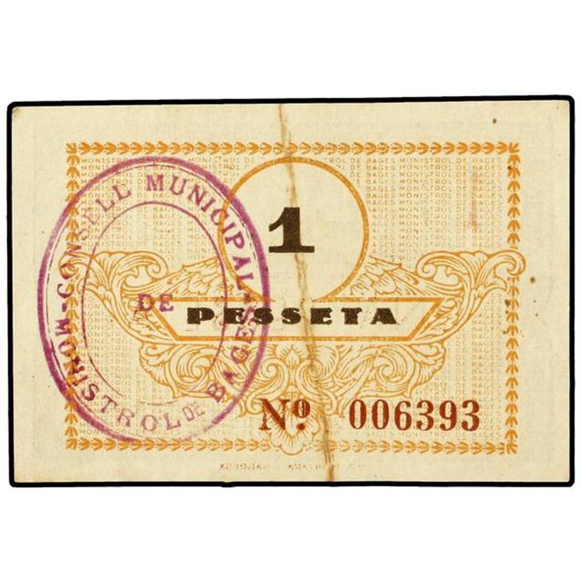 1 Pesseta. - S/F. - Aj. de MONISTROL de BAGES. - ESCASO. AT-1523 ;T-1747. EBC. - -