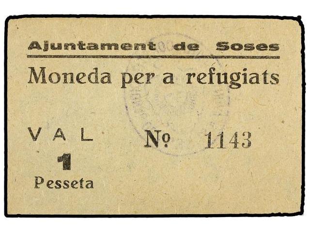 1 Pesseta. S/F. Aj. de SOSES. Moneda per a refugiats. MUY RARO. AT-2406. EBC-.