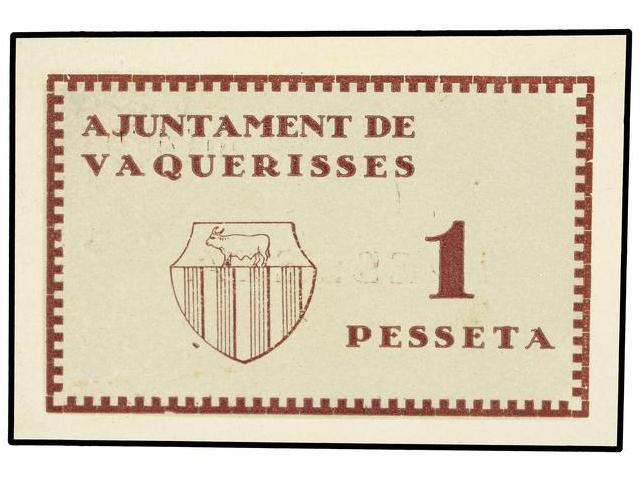 1 Pesseta. S/F. Aj. de VAQUERISSES. Cartulina. AT-2628a; T-3047a. SC.