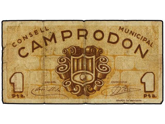 1 Pesseta. S/F. C.M. de CAMPRODON. (Pequeñas roturas). MUY ESCASO. AT-632; T-737. MBC-.