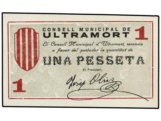 1 Pesseta. S/F. C.M. de ULTRAMORT. Sello tampón negro. AT-2622a; T-3041a. SC.