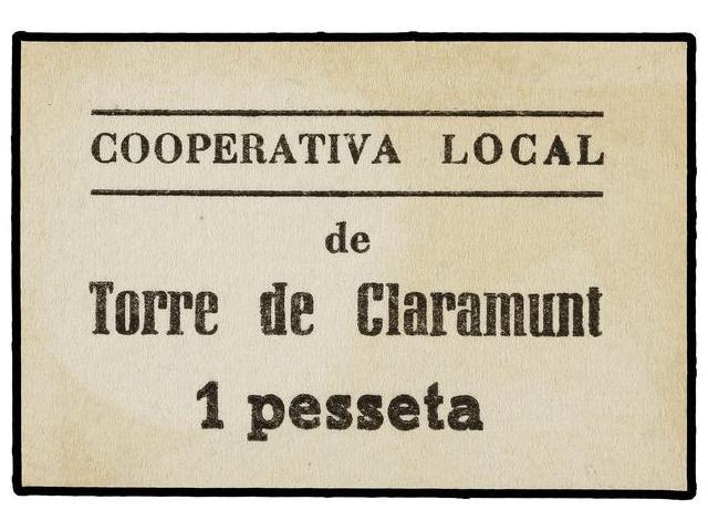 1 Pesseta. - S/F. - COOPERATIVA LOCAL DE TORRE DE CLARAMUNT. - Cartoncillo. (Algo sucio en anverso). EBC+. - -