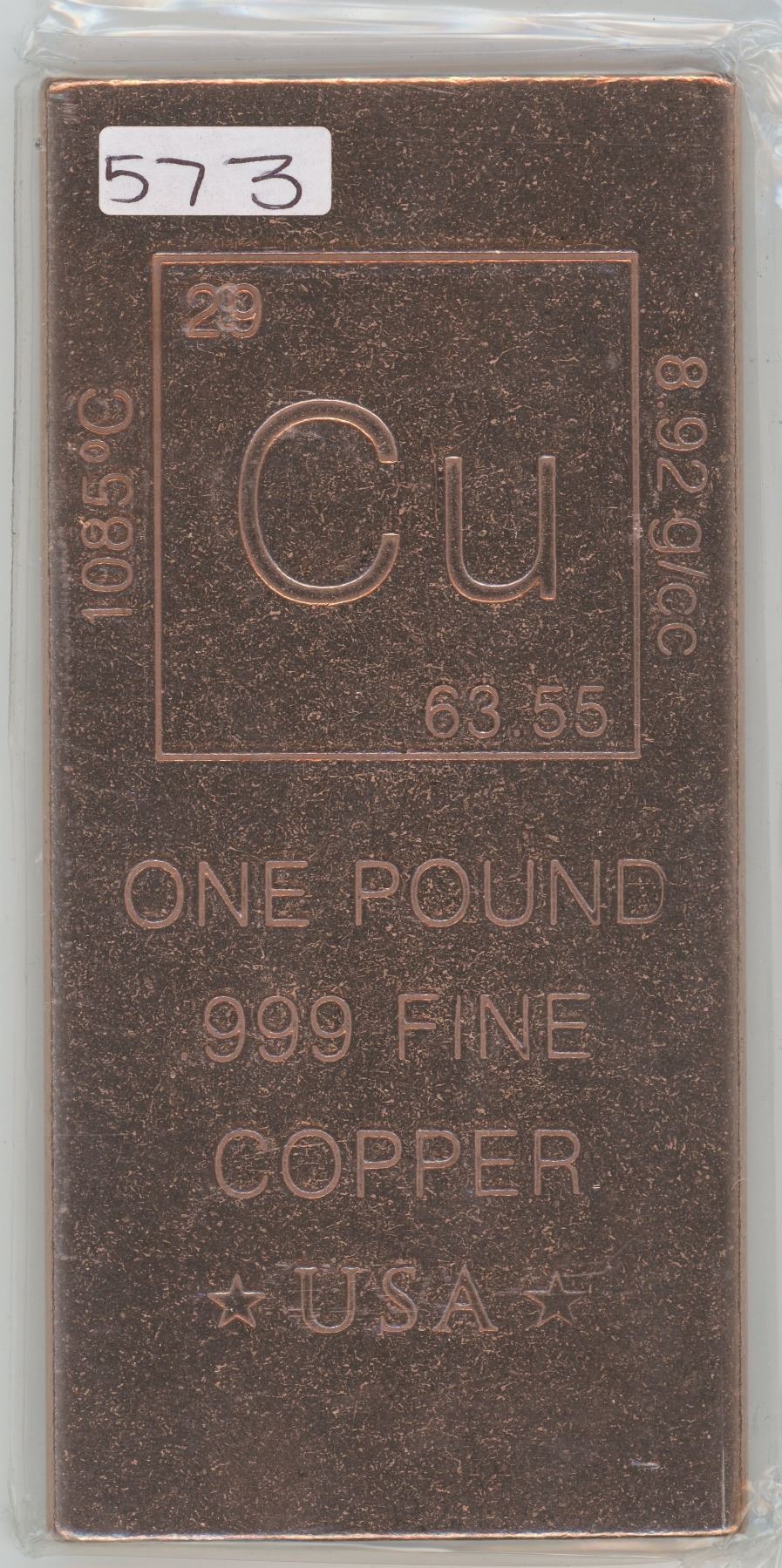 1 Pound .999 Fine Copper Bar,1-Copper Bar with Periodic table info for Copper imprinted on the bar