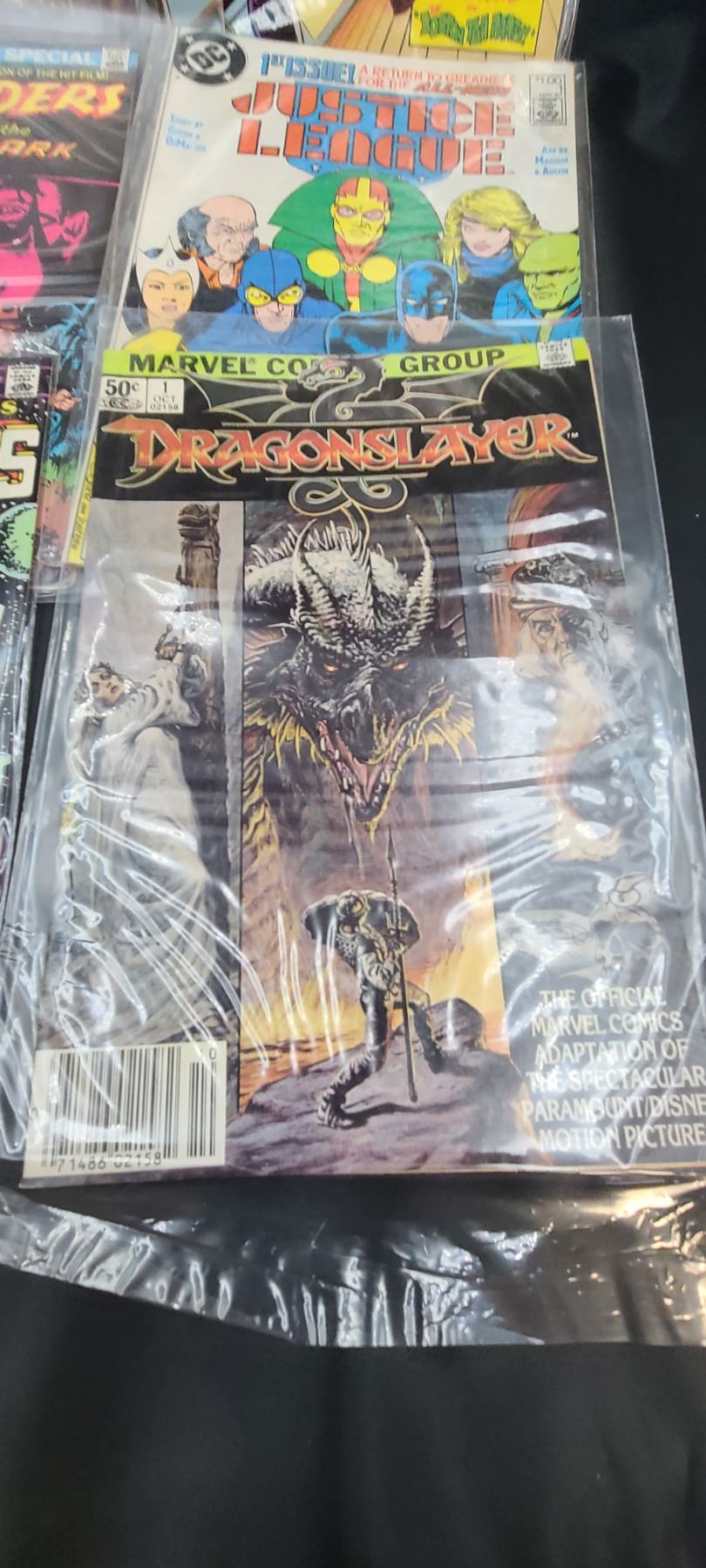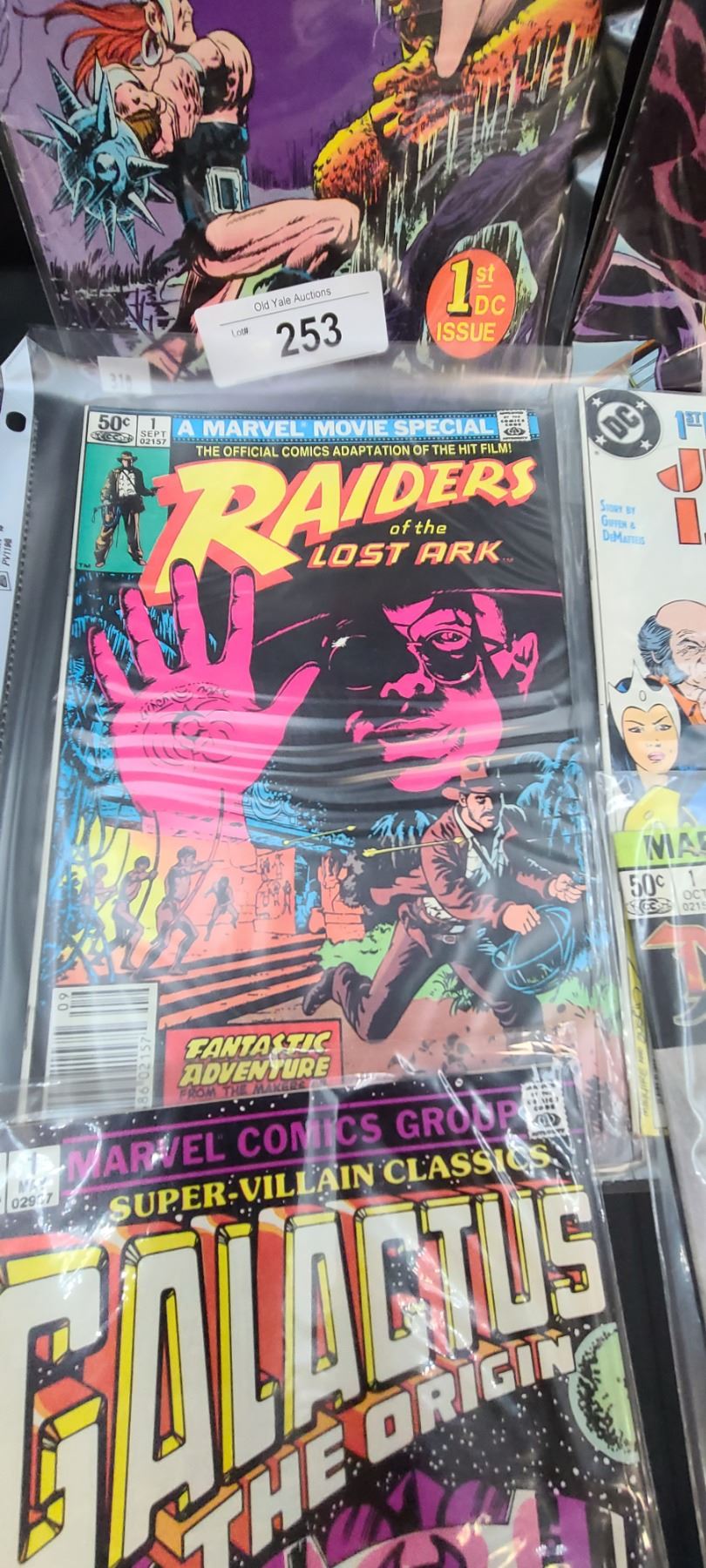 #1 RAIDERS OF THE LOST ARK COMIC, #1 JUSTICE LEAGUE, #1 DRAGON SLAYER, #1 GALACTUS, #1 TARGITT, & #1