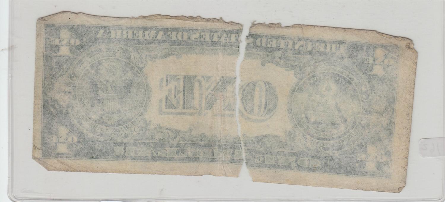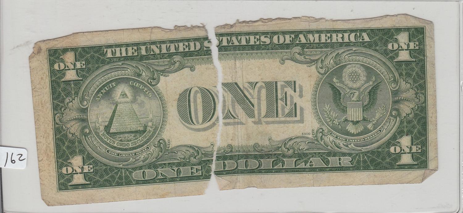 $1 REAL SPLIT BILL BLANK BACK TORN IN 2 MAN MADE ERROR NEAT ITEM