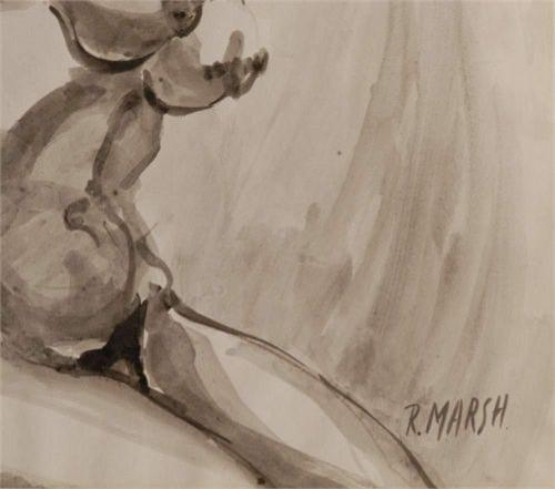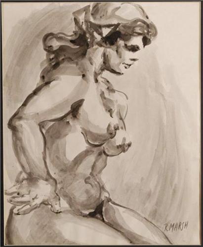 1 REGINALD MARSH, 17"x13 3/4" watercolor, seated nude, signed lower right, Please read our Terms and Conditions regarding guarantees of authenticity. We will allow until May 30th for expert evaluation and notification if determined not to be by the named artist for this lot. CONDITION: EXCELLENT, PACKING AND SHIPPING (excluding insurance) AVAILABLE WITHIN CONTINENTAL U.S. BY FAIRFIELD AUCTION FOR $50 . BUYER MAY ALSO PICK-UP OR USE A 3RD PARTY FOR PACKING AND SHIPPING
