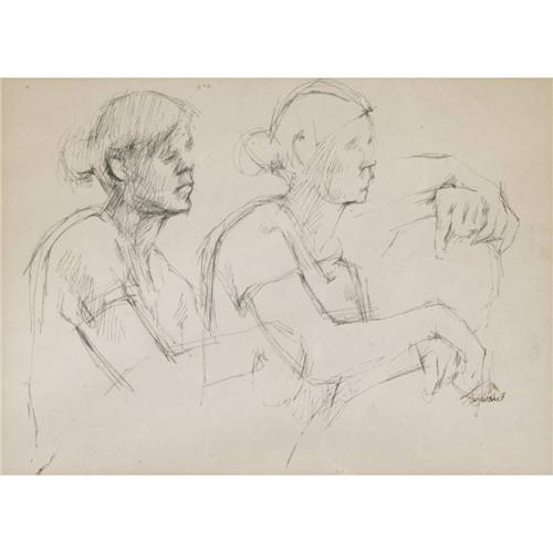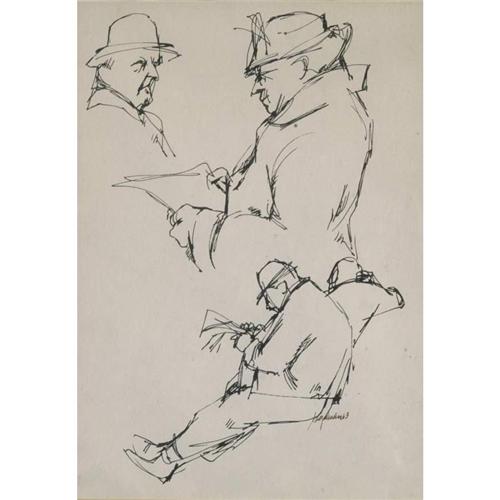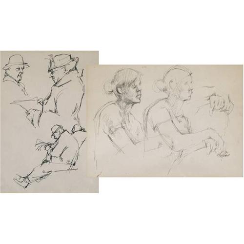 1 RICHARD SEGALMAN pair of ink sketches 7 1/2" x 11", each signed and dated 1963 PACKING AND SHIPPING (excluding insurance) by Fairfield Auction to points within the Continental U.S.A. (international must be handled by 3rd party shipper) $40. CONDITION REPORT: excellent with light toning, image with men has a couple small wrinkles.