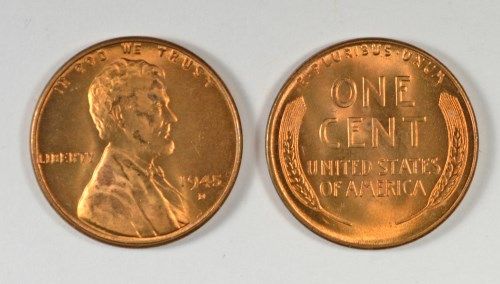 ( 1 ) ROLL ( 50 ) COINS 1945-D LINCOLN CENTS, MS64--67 GEM REDS