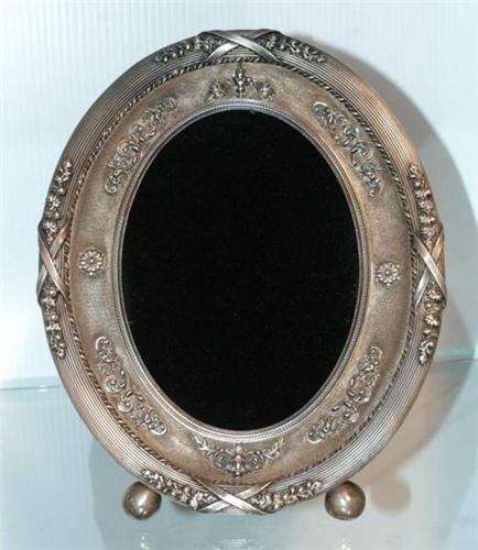1 RUSSIAN SILVER PICTURE FRAME, with the mark of Pavel Ovchinnikov, dated 1870?, 10 3/4"x9" overall, note: one ball foot dented and split, the ball feet are not centered, but appear correct. There are no "extra" holes at bottom of frame. packing and s