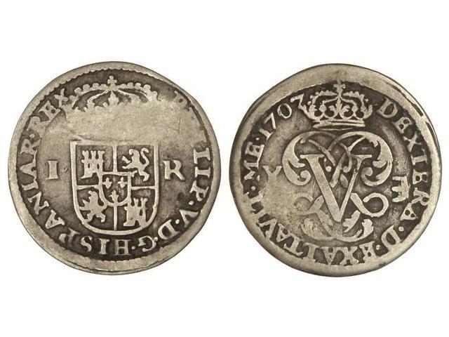 1 Real. - 1707. - SEGOVIA. - Y. - EL ´0´ de la fecha grande. (Defecto de presión en anverso). Cal-1688. MBC-. - -