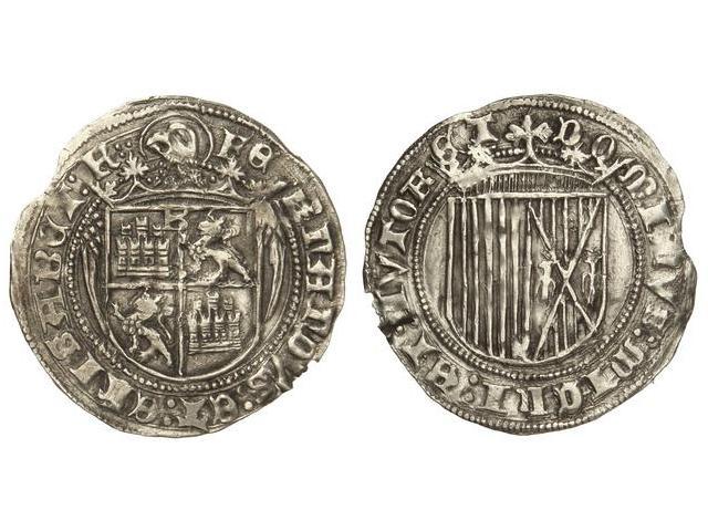 1 Real. BURGOS. B en la parte superior del escudo. Acuñada antes de la Pragmática de 1497. RARA. Cal-283. MBC+.