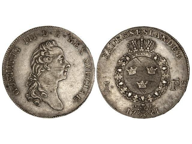 1 Riksdaler. 1781-OL. GUSTAVO III. AR. Restos de brillo original. (Rayitas de ajuste). KM-367. MBC+.
