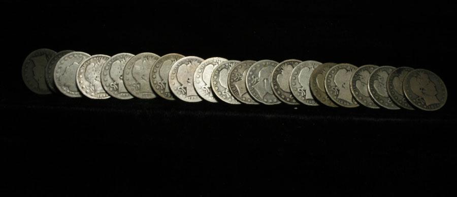 1894-o, 1908-o, 1908-s, 1910-s, 1915-o, 1914-s, 1894-o, 1898-p, 1909-s, 1910-p, 1908-o, 1908-s, 1903-s, 1911-s, 1910-s, 1903-s, 1904-p, 1894-s, 1899-s, 1894-o Most Grade from Good to Very Good, Total silver is 7 1/4 ounces of pure silver. Estimated Value $400
