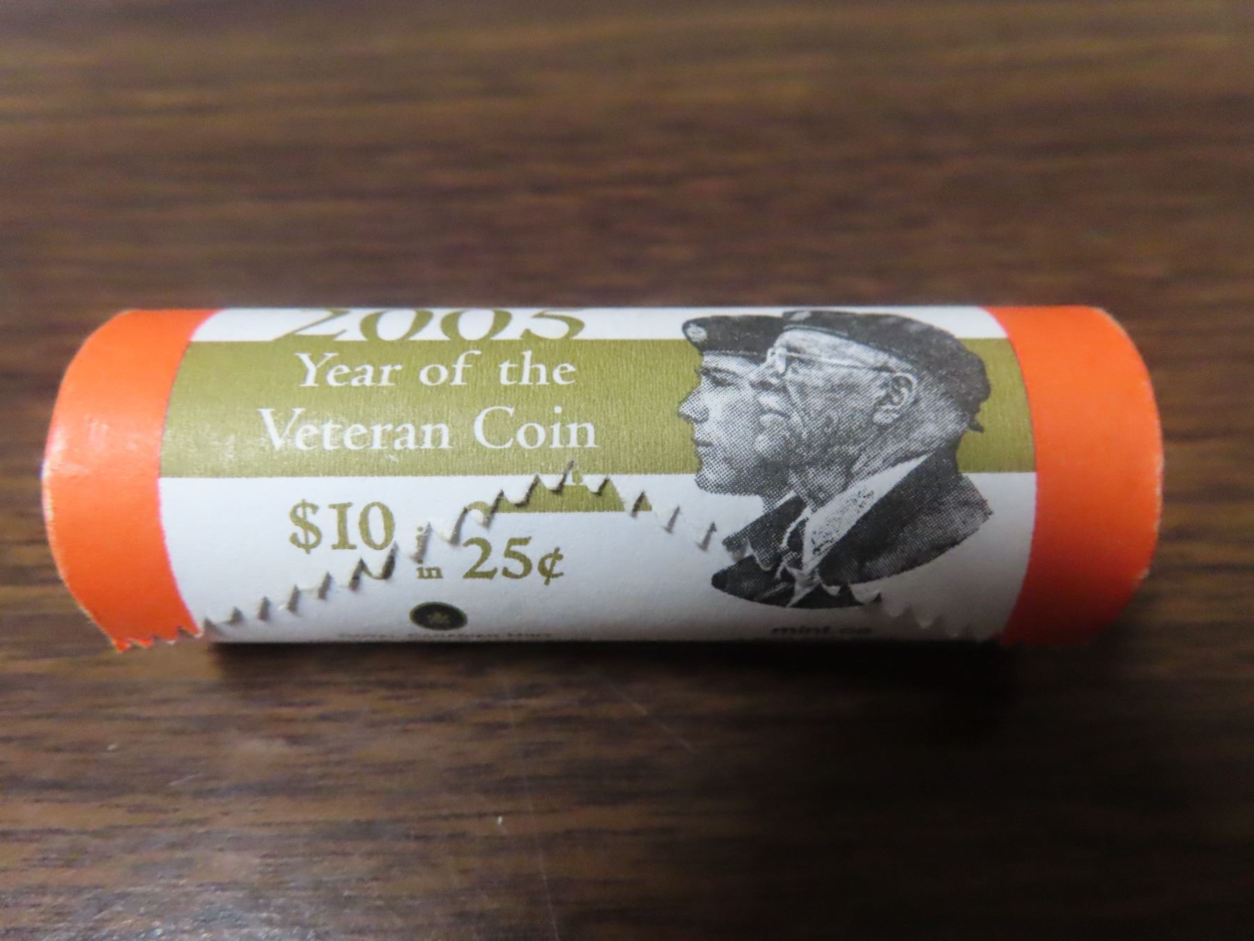 1 Roll of 40 2005P Year of the Veteran 25 Cents. Unopened original roll of 40 quarters.