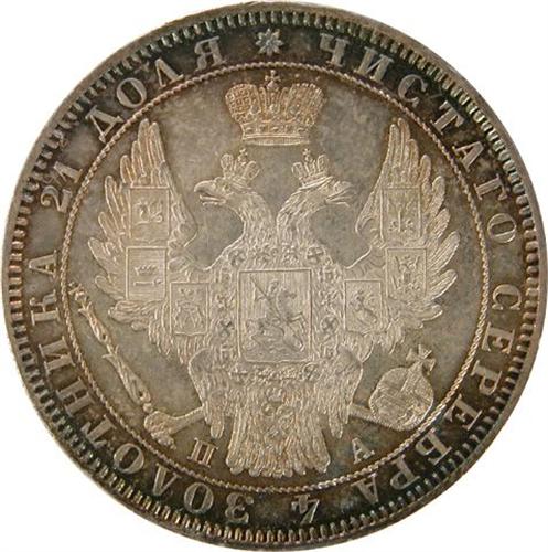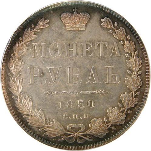 1 Rouble 1850 (SP) ICG MS-62. A very well struck piece with very attractive toning