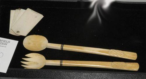 1 SAILOR MADE SALAD SET together with a VICTORIAN IVORY DAY CALENDAR, largest 9 1/2" long, CONDITION: excellent, no damage or repairs. PACKING AND SHIPPING BY FAIRFIELD AUCTION WITHIN CONTINENTAL USA (excluding insurance) $20
