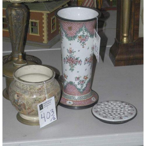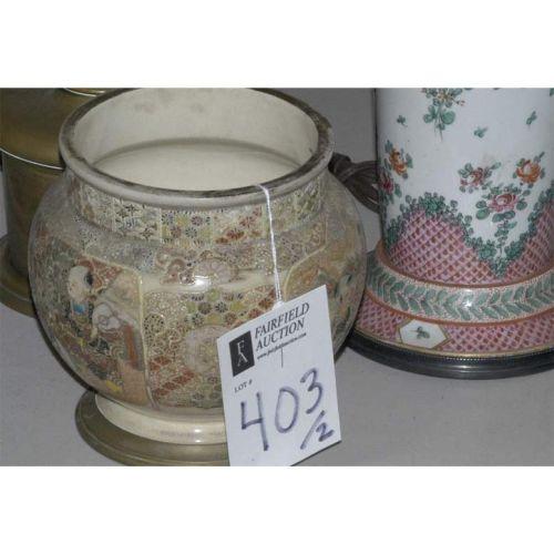 1 SATSUMA LAMP BASE together with a 14" CHINESE VASE with frog cover,