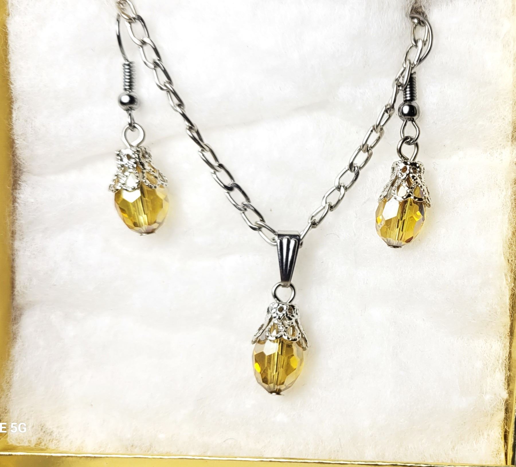 ON 16" CHAIN, STONES ARE GOLDEN YELLOW IRREDESCENT SWAROVSKY CRYSTALS. JEWELERY