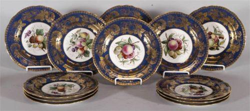 1 SET OF 12 SPODE FRUIT PLATES, 9" diamter, CONDITION: EXCELLENT with some very minor surface scratches, PACKING AND SHIPPING (excluding insurance) AVAILABLE WITHIN CONTINENTAL U.S. BY FAIRFIELD AUCTION FOR $50 . BUYER MAY ALSO PICK-UP OR USE A 3RD PARTY FOR PACKING AND SHIPPING