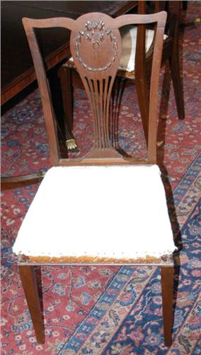 1 SET OF EIGHT HEPPLEWHITE STYLE DINING CHAIRS, circa 1910, upholstered with muslin under covering only,