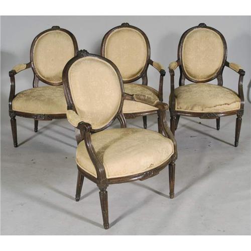 1 SET OF FOUR MATCHING LOUIS XV FAUTIELS late 18th century PACKING AND SHIPPING must be handled by 3rd party shipper. CONDITION REPORT: several old repairs, one arm glued out of alignment.