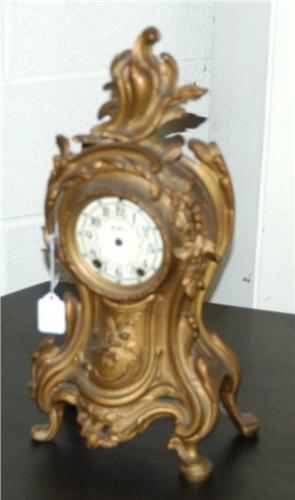 1 SETH THOMAS GILT METAL MANTLE CLOCK, 18" high, lacking hands, packing and shipping $40