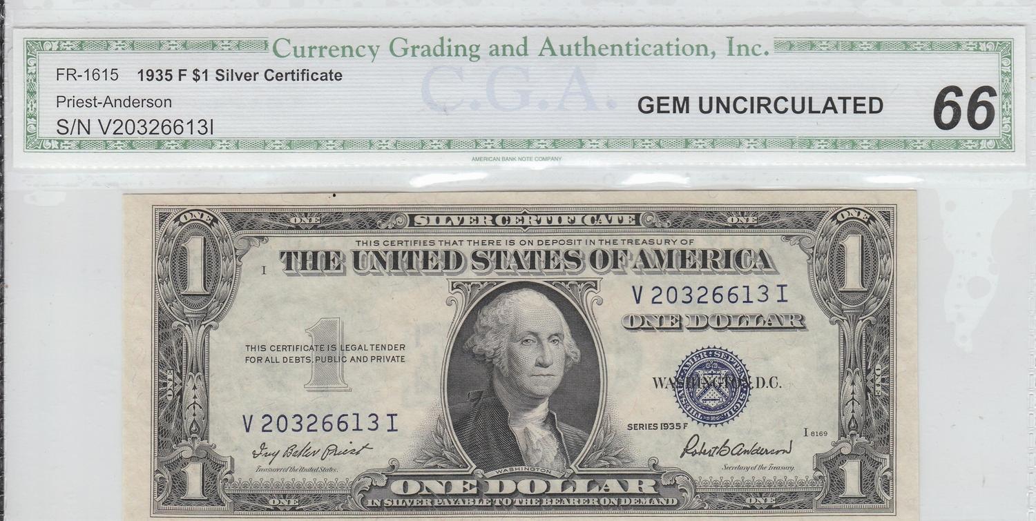 $1 SILVER CERTIFICATE 1935 F CGA GEM 66