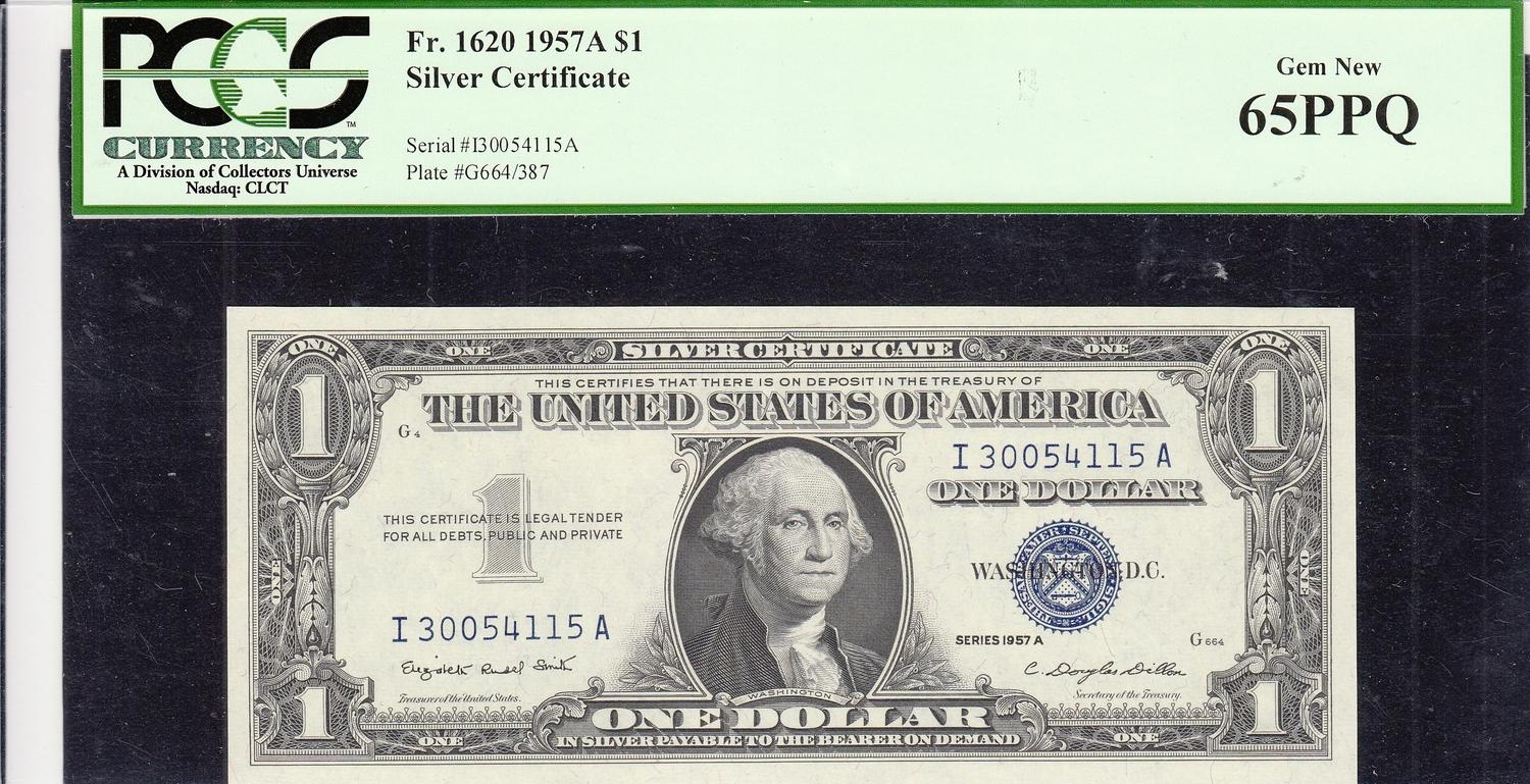 $1 SILVER CERTIFICATE 1957 GEM PCGS 65