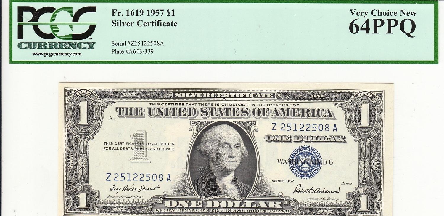 $1 SILVER CERTIFICATE 1957 PCGS 64PPQ