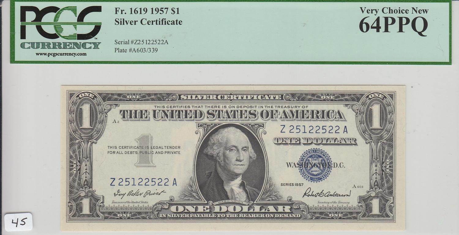 $1 SILVER CERTIFICATE 1957 PCGS PPQ 64