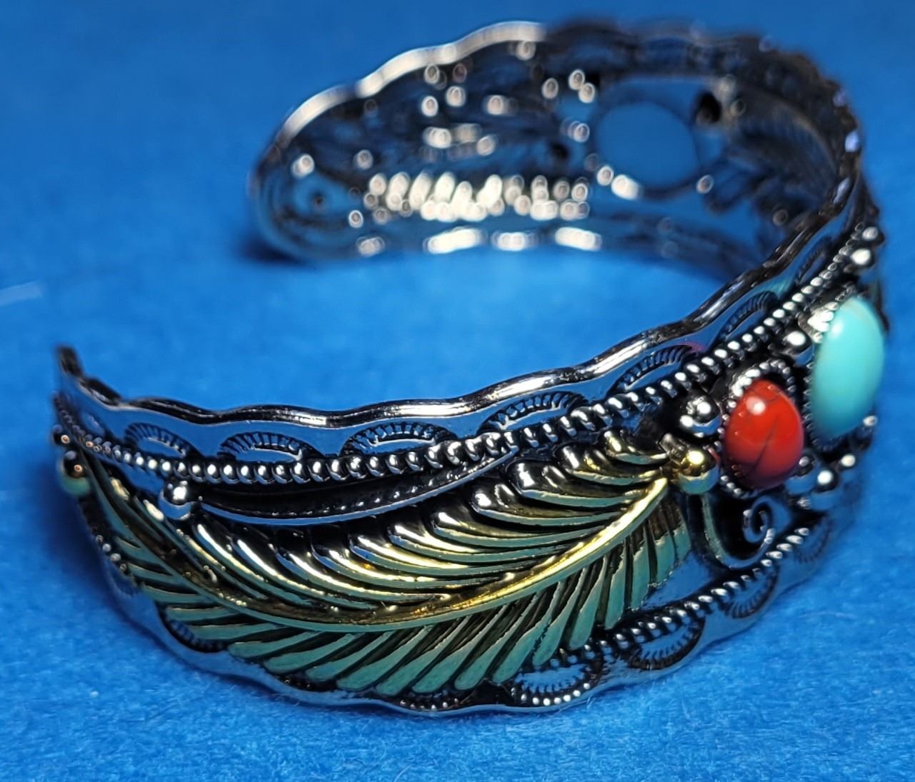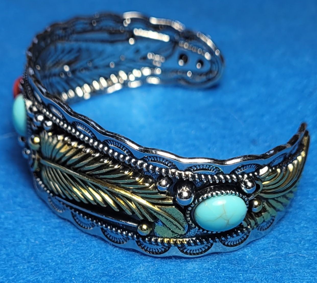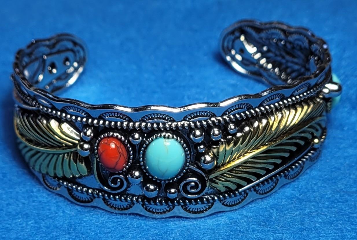 RED & BLUE TURQUOISE OPEN CUFF STYLE BCACELET. JEWELERY