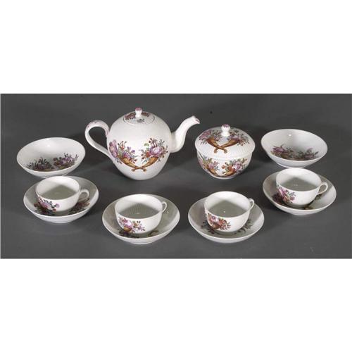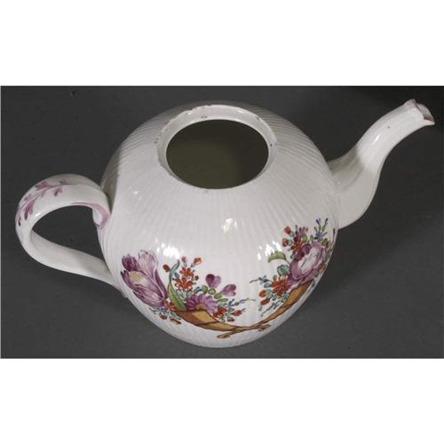 1 STAFFORDSHIRE TEA SET with cornucoopia decoration 19th century PACKING AND SHIPPING (excluding insurance) by Fairfield Auction to points within the Continental U.S.A. (international must be handled by 3rd party shipper) $40. CONDITION REPORT: excellent with chipping around rim of tea pot, minor rubs.