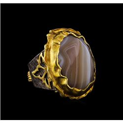 One of a kind high fashion sterling silver Ring weighing 18.4 grams. Black Antique texture. Containing: Crystal Greenish Blue Agate. This sterling sil