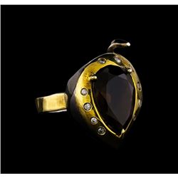 One of a kind high fashion sterling silver Ring weighing 13.8 grams. Black Antique texture. Containing: Smoky Quartz, White Crystal. This sterling sil