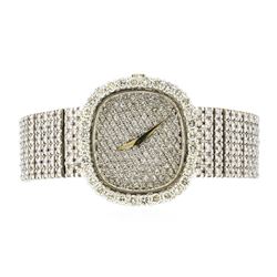 One electronically tested platinum cast diamond ring with a bright polish finish. Six and one-half millimeter wide band features five flush set round