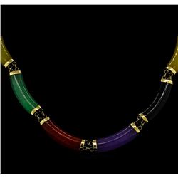 One yellow gold ring, partly rhodium plated, weighing in total 12.28 grams, containing 1 colored stone and one hundred four diamonds with a total weig