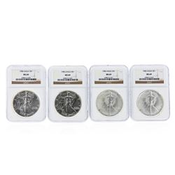 One 1986 NGC MS69 $1 American Silver Eagle Coin Set. The set features four 1986 NGC MS69 $1 American Silver Eagle Coins. NGC Certified.