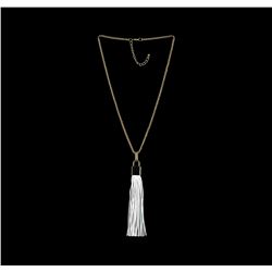 High end designer jewelry. Leather Tassel Square Pendant Chain Necklace - Gold Plated. Gold Plated Metal/3" Ext Clasp. White/gold. 28/6inches. ...