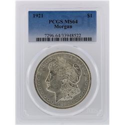 One 1921 PCGS MS64 Morgan Silver Dollar. PCGS Certified.