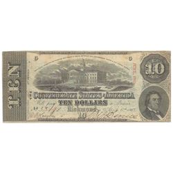 One 1863 $10 The Confederate States of America Note T-59 CC