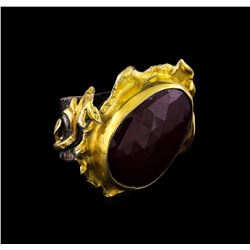 One of a kind high fashion sterling silver Ring weighing 34 grams. Black Antique texture. Containing: Ruby. This sterling silver promises a lasting sh