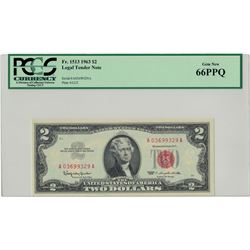 1963 $2 PCGS Gem New 66PPQ Legal Tender Note. PCGS Certified.