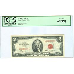 One 1963 PCGS GN66PPQ $2 Red Seal Legal Tender Bank Note.